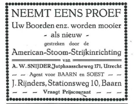 Waarvan hier een advertentie van de american stoom strijkinrichting.