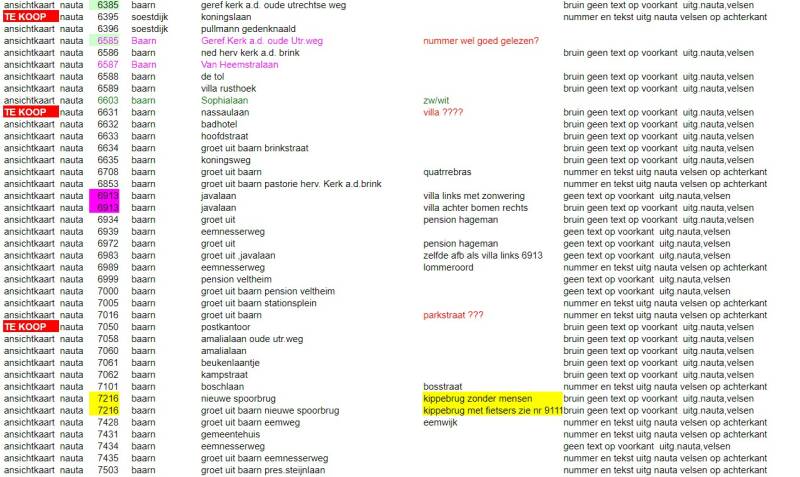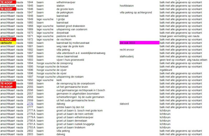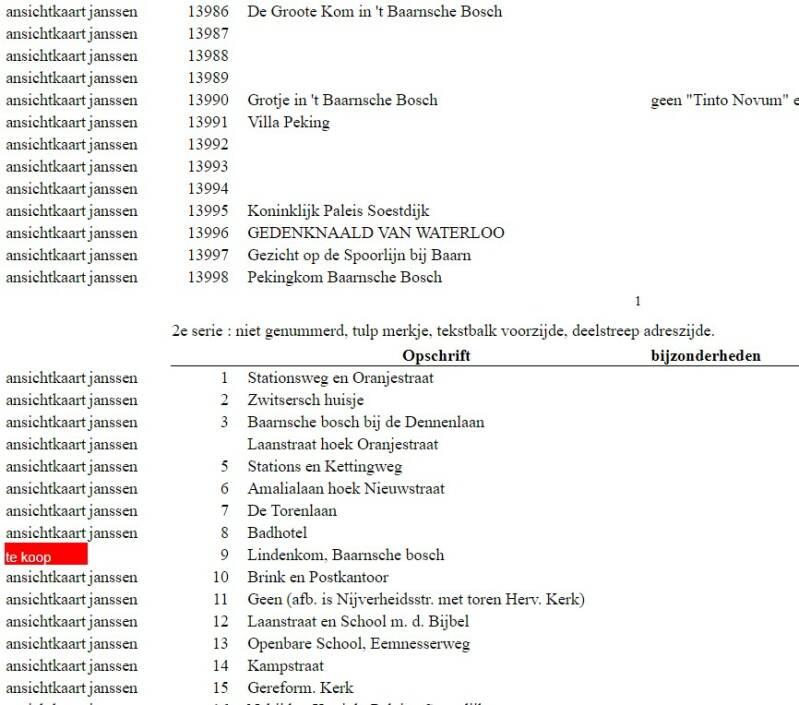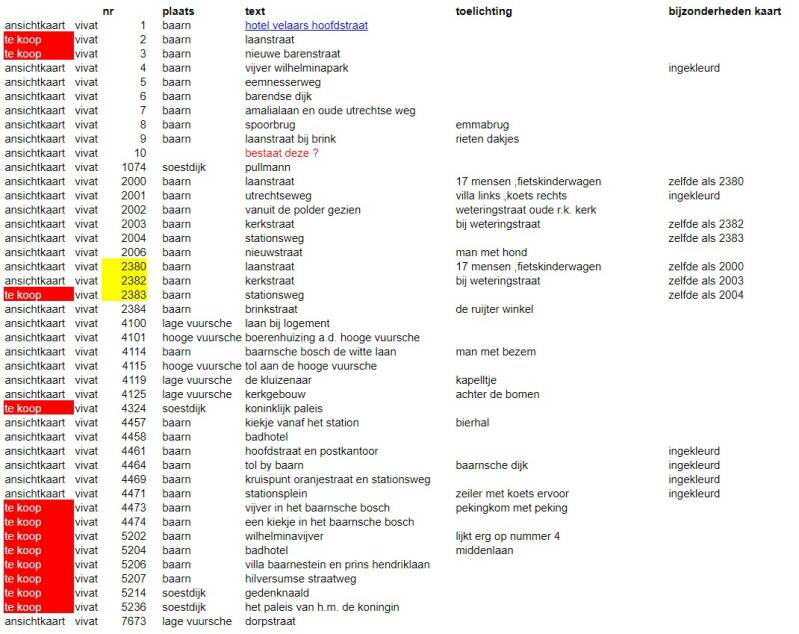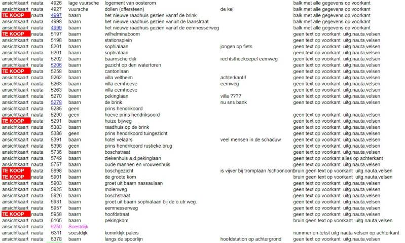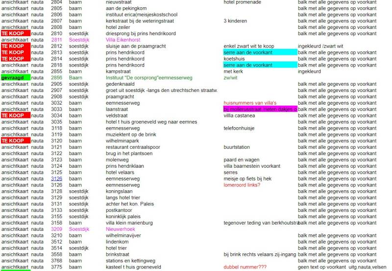 catalogus ansichtkaarten van baarn, lage vuursche en soestdijk