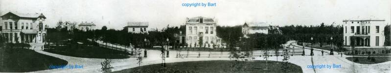 Nog een foto samengesteld uit 2 foto's van 1876 van Baarnestein in aanbouw en een muziek koepel in het park bij het station.